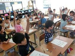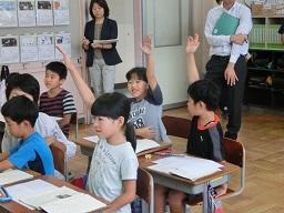 たくさんの先生方が見ている中でも、子供たちは元気よく手を挙げ、音読などの大きな声でできました。