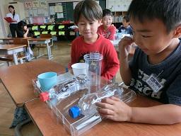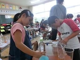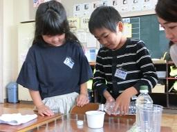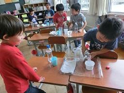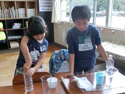 実験セットを先生からもらった子供たちです。先生に言われたことは「2人で交代でやってください。」