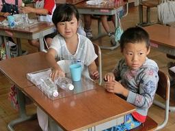同じ大きさの透明なプラスチックのコップも使って調べていきます。