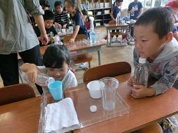 今度は透明なプラスチックのコップは使いません。直接水を移しています。