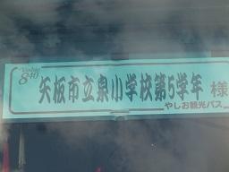 こんな感じのバスです。先に乗ってみました。バスの正面には泉小学校の5年生の名前が書いてありました。