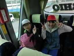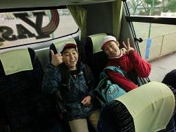 こうしてバスは予定時刻に出発しまし。バスの中から手を振っています。