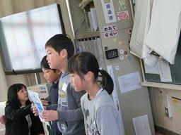4年生の理科、ドライアイスの授業シリーズを始めます。新聞紙に包まったドライアイスを子供たちに回してさわっています。「冷てえ!」と言う声が聞こえます。