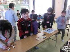 側にいる子はできあがったクルマを他の校庭に運ぶ仕事をしています。