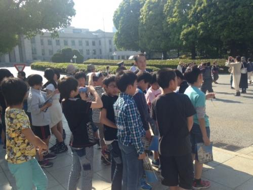1年生は宇都宮動物園に行きました。最初に集合写真を撮りました。それから整列をし直して、動物を見に回りました。