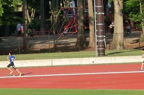 1000mですから、400mトラック2周半です。最初の1周半は、様子をみて2位につけていました。