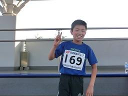 このまま1位でゴール。1位のサインで写真に収まるMK君です。