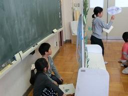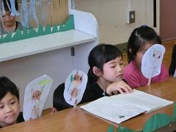 今度は3年生のペープサートを持つ子の様子です。教科書を確認しながらやっていますね。