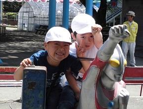 サファリカーが終わったら、滑り台に乗って遊び出しました。