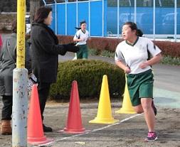 5年女子の1位こ子が曲がります。そして5年生男子です。