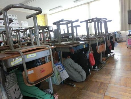 ここは6年生の教室です。すでにきちんと避難が完了していました。