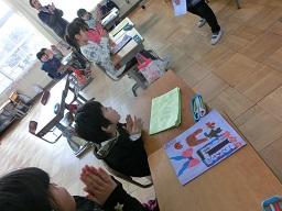 すでにグループになっています。この日の勉強は「権利の熱気球」というお話です。