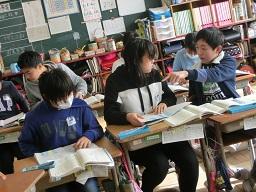ここは3年生の教室です。3年生は国語の勉強でした。「ことわざについて調べよう」という勉強でした。