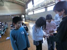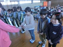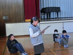 図書委員会の子が前に出て、多読の人にミニ賞状を手渡します。