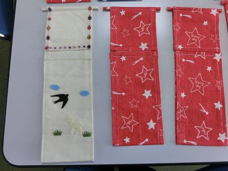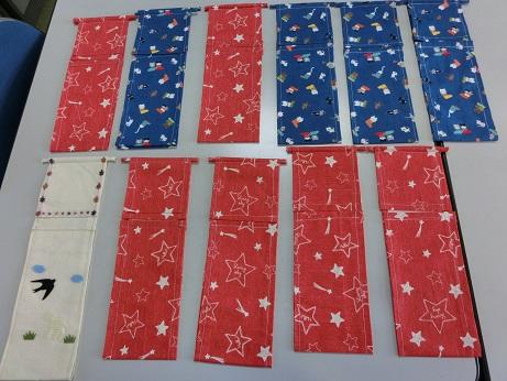 ミシンで縫いました。もうすぐ卒業なので、小学校にプレゼントです。どうもありがとうございました。