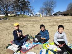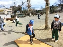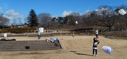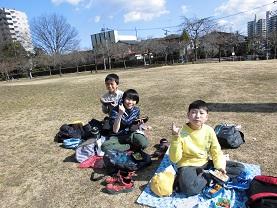 今度は、たこ揚げをするので、芝生の広場にむかいます。