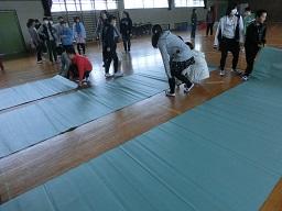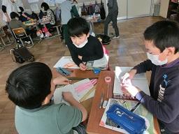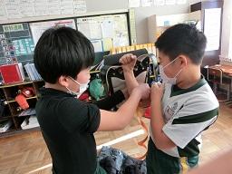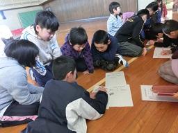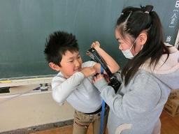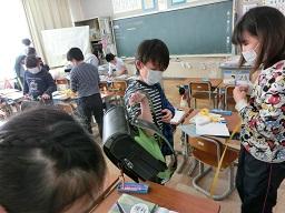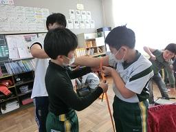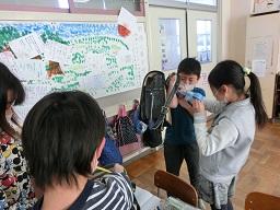 子供たちは力を入れて曲げるときはランドセルを使いました。