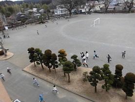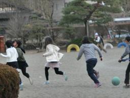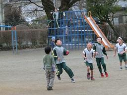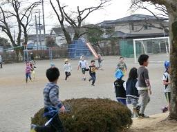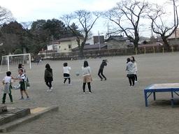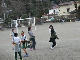 その近くで5年生も数名遊んでいました。西側に目を移すとサッカーをしている4年生です。