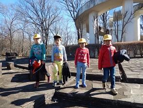 「私も霜柱、見つけました。」この日は日差しが暖かかったので上着を脱ぐ子がいました。