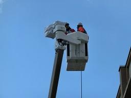 今日の昼休みに工事車両が校内に入って作業を行いました。屋上にある非常用の発電、太陽光パネルのメンテナンスを行いました。