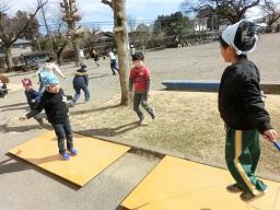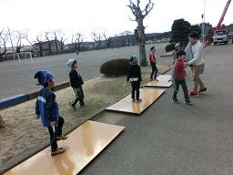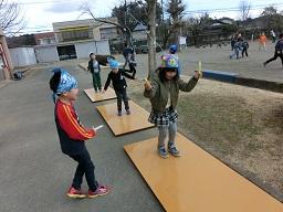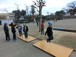 縄跳びジャンプ台が3台完成し、子供たちが交替で自由に使うことができます。