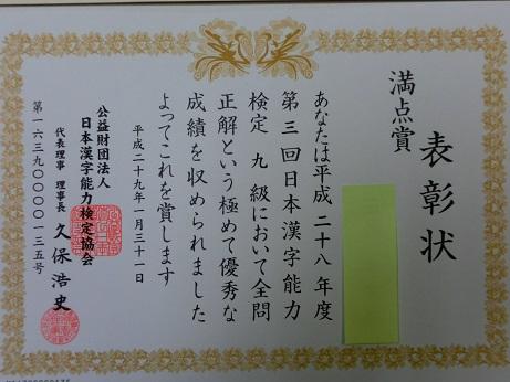 なお満点賞が一人出ました。なかなか満点を取るのは難しいです。頑張りましたね。