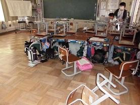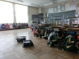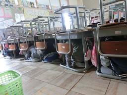 ここは6年生の教室です。すでにきちんと避難が完了していました。