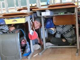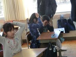 この後子供たちが知らないことが起こります。放送が入って「避難訓練です。」どんな避難訓練になるでしょうか。
