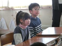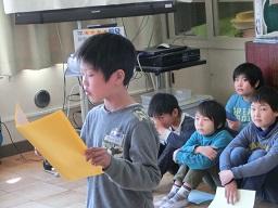 自分で書いた作文を発表していました。周りの子供たちは座ってよく聞いていました。
