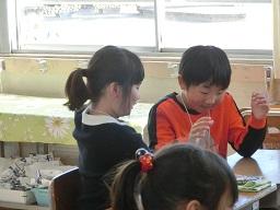 「どういうところが上手なのかな?」すると、「単語で書く。」「ひらがなでいい。」などと子供たちは答えます。