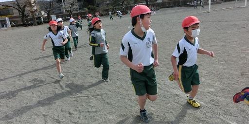 東昇降口近くでは、縄跳びをやる1年生の姿が見えました。