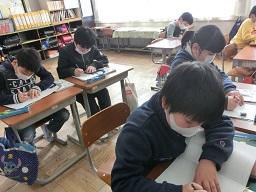 最初に先生が文章をゆっくり読みました。それを子供たちがメモしますが、多くの子が困りました。
