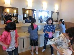 パイロットの姿です。航空会社です。そしてお化粧をしている子どもたちを見つけました。少し恥ずかしそうです。