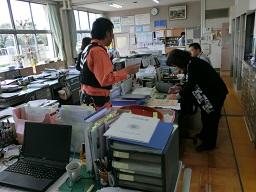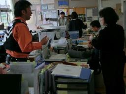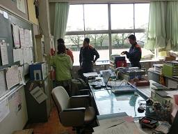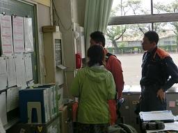 今日の2時間目に今年1回目の避難訓練を実施しました。9時38分に地震が起きて放送、その後火災が起きたので、先生の指示で避難をするという設定です。訓練の前に、職員室では、消防署の方に職員が電話の仕方について指導を受けました。
