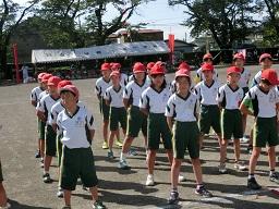 今日から運動会シリーズが始まります。入退場門に整列完了です。指揮をするのは6年TW君です。