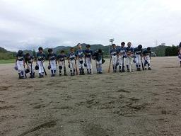 試合が終わり、応援席にあいさつする泉クラブの子どもたちです。きりっとした顔つきで格好いいですね。