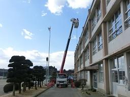 今日の昼休みに工事車両が校内に入って作業を行いました。屋上にある非常用の発電、太陽光パネルのメンテナンスを行いました。