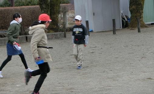 5年生の女子が今投げようとしています。こわそうな低学年女子二人です。上の青い文字をクリックすると動画が見られます。