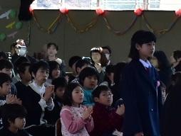 出し物を聴く在校生の様子です。上左は4年生、右は3年生dす。