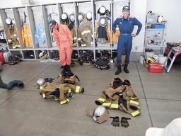 今度は出動するときに着替える様子を見せてくれました。その様子を3回の動画に分けて見ました。上の青い文字をクリックすると動画が見られます。