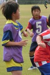 上の左の写真は相手キーパーをかわしてシュートを決めたシーンです。