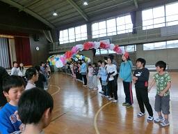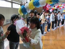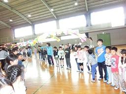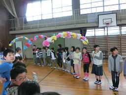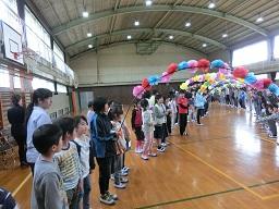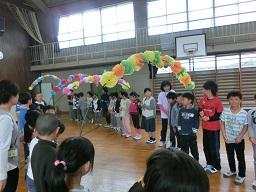 いよいよお見送りの準備です。6年生が中心になってアーチを作ります。