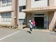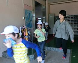 3年生も上手に避難できています。窓から外を写してみました。上の青い文字をクリックすると動画が見られます。
