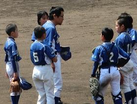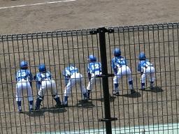 7回表、最後の攻撃になります。ベンチ前で監督の話を聞きます。
