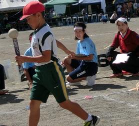次のグループです。                     うまくボールを乗せられたね。慎重に!