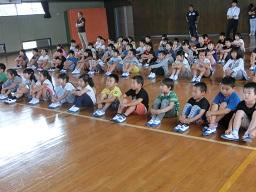 夏休みにも練習がありました。頑張って練習してきました。下級生が行儀良く聞いていますね。