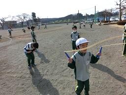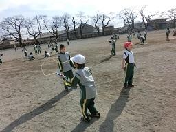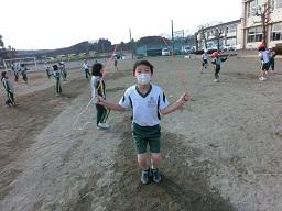 今日のふれあいタイムは縄跳び大会です。その前の昼休みに、体育着で練習していた2年生に縄跳びを見せてもらいました。