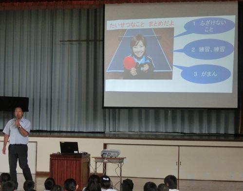 最後にまとめとして、「1 ふざけないこと 2 練習をすること 3 がまんすること」でした。「これからは自分が主役です。」そのことを話しました。