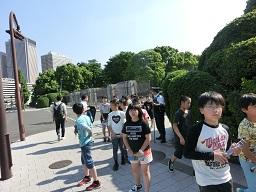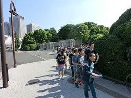 国会の正門を出てバスの待つ駐車場に歩いて向かいます。警備の警察官の姿が見えますね。