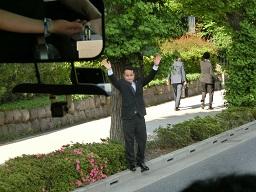 バスに乗って駐車場を後にすると、国会議員の方が手を振っていました。